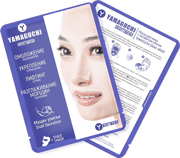 Основные сведенияМаска Yamaguchi Snail Mask имеет в основе улиточный муцин. Он гарантирует следующие эффекты: